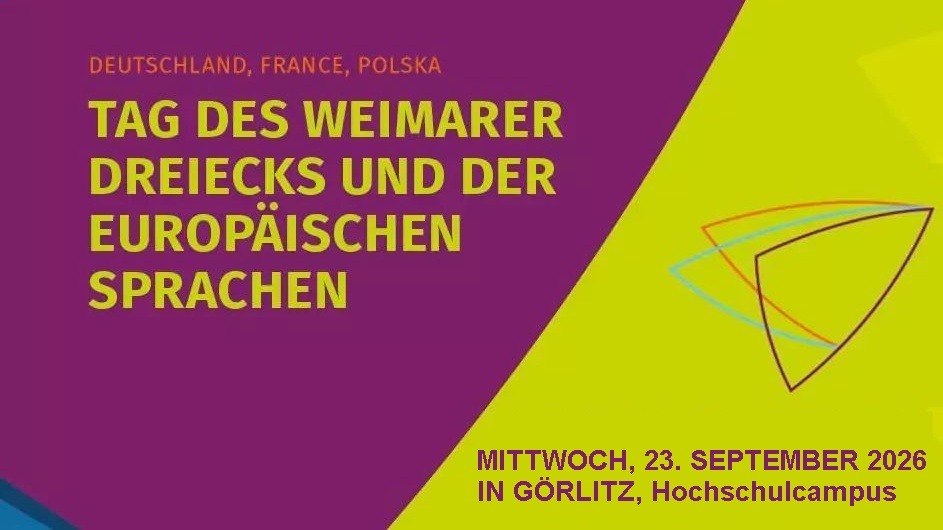 Am Mittwoch, 23.09.2026 findet der 3. Tag des Weimarer Dreiecks in Sachsen gemeinsam mit dem Tag der Europäischen Sprachen auf dem Hochschulcampus Görlitz direkt an der deutsch-polnischen Neißegrenze statt.