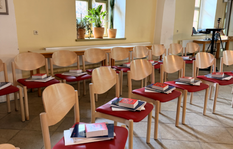 Im Anschluss an den ersten Programmteil hatten die Teilnehmer/-innen während der Pause die Gelegenheit, sich bei Julian Schorr und Luise Träger (beide KoKoPol) über die Möglichkeiten der Förderung im Programm „Polnisch als Herkunftssprache“ beraten zu lassen.