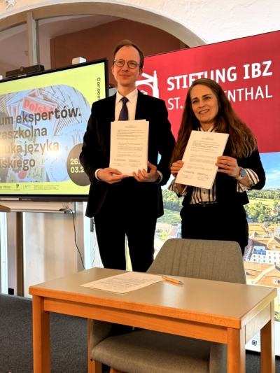 Das Fachforum wurde feierlich von Gregor Schaaf-Schuchardt, dem Vorstandsvorsitzenden der Stiftung IBZ St. Marienthal, der Trägerorganisation von KoKoPol, eröffnet, der in seiner Rede die dynamische Entwicklung des Polnischunterrichts in Deutschland sowie die entscheidende Rolle des Austausches und der gegenseitigen Unterstützung der Bildungskreise hervorhob. Ein wichtiges Zeichen für die intensivierte Zusammenarbeit war die feierliche Unterzeichnung der Verlängerung der Kooperationsvereinbarung zwischen KoKoPol und dem IRJP, vertreten durch Izabela Siekierska-Rosiak, die eine Fortsetzung der gemeinsamen Aktivitäten zur Förderung der polnischen Sprache ermöglicht.