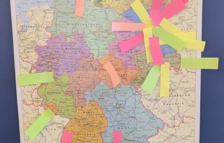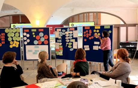 Den Abschluss des Forums bildete ein Workshop-Block, der unter Anwendung der Design-Thinking-Methode durchgeführt wurde. Diese Arbeitsform ermöglichte einen dynamischen Austausch von Erfahrungen und Gedanken, bei dem die Teilnehmer/-innen pro Workshop 30 Minuten Zeit hatten, um einen konkreten Beitrag zu jedem der vier diskutierten Themenbereiche zu leisten, diese waren: