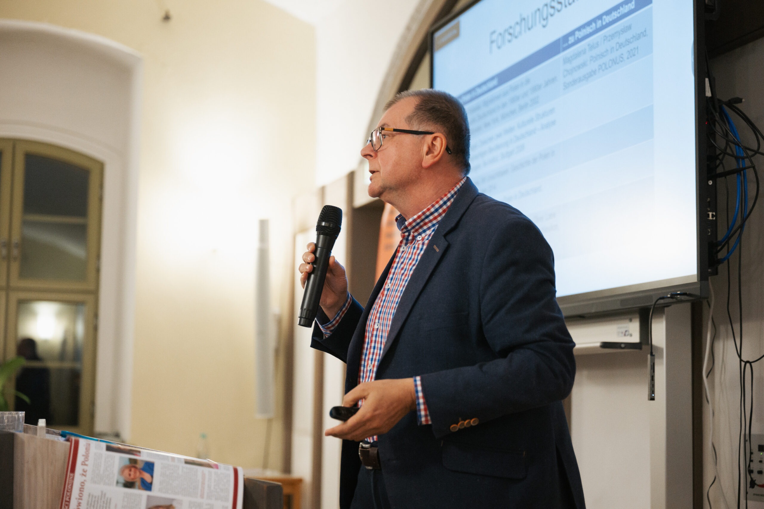 Cykl wystąpień rozpoczął dr Andrzej Kaluza (Niemiecki Instytut Kultury Polskiej w Darmstadt / DPI), który przedstawił kompleksowy przegląd tematu: „Polska społeczność i język polski w Niemczech: stan obecny i perspektywy”.