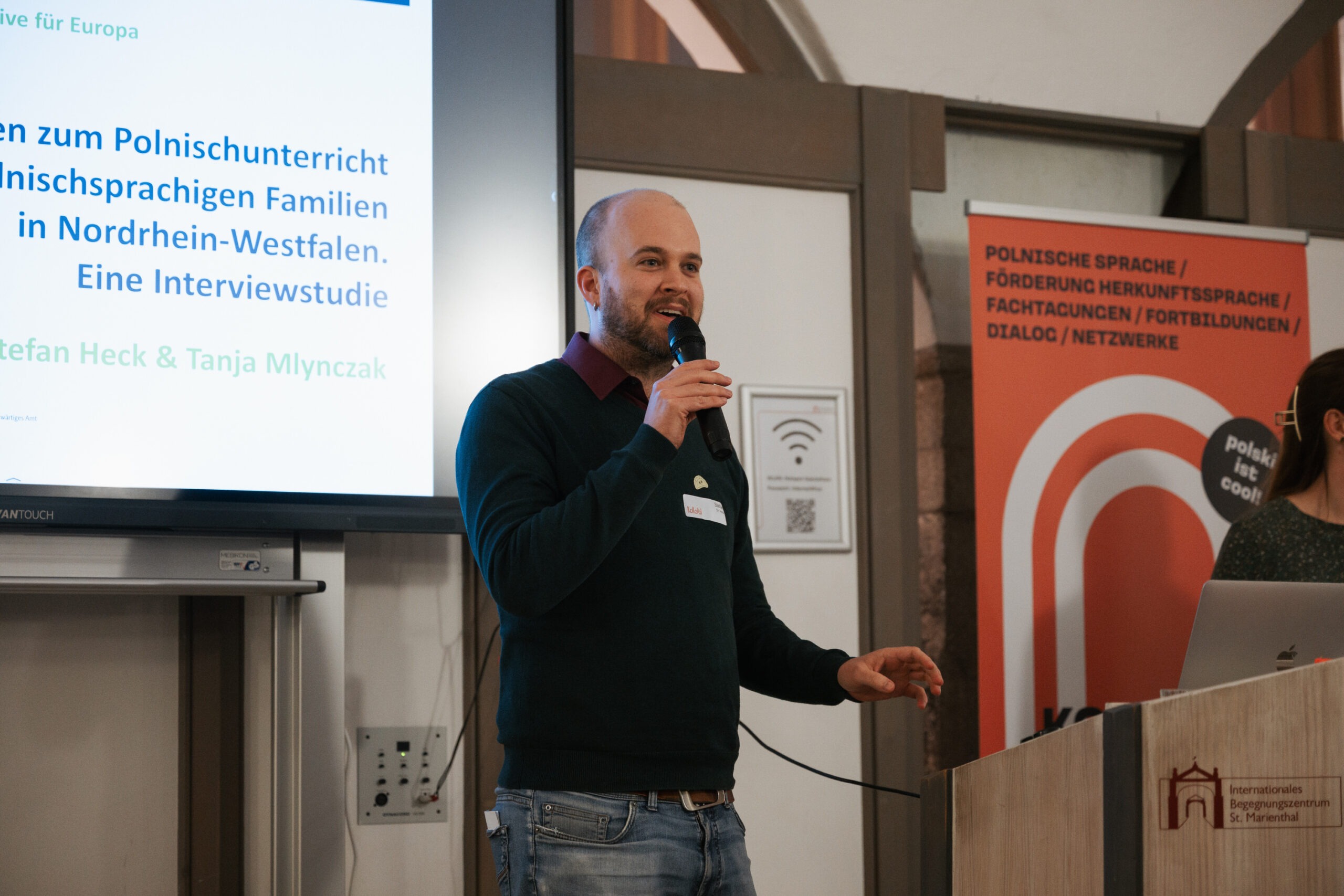 Blok referatowy zamknęło wystąpienie prof. dr Tanji Anstatt, dr. Stefana Hecka oraz Tanji Mlynczak (Uniwersytet Ruhry w Bochum), którzy przedstawili końcowe wyniki badania FamPol dotyczące „Postaw wobec nauki języka polskiego w rodzinach polskojęzycznych w Nadrenii Północnej-Westfalii”.